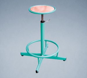 Chaise à Ecritoire à structure renforcée Structure métallique en tube cylindrique 25 mm de diamètre, épaisseur 1,5, revêtu Epoxy, couleurs au choix suivant nuancier. Siège et dossier encastrés, en contreplaqué, vernis ou lamifiés.